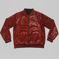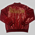 Red sequins with One Voice patch on the front chest and Barry Manilow logo on the back in gold sequins